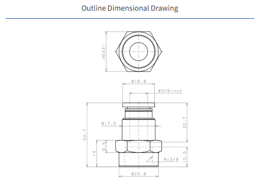 PCF3/8-N3U – PISCO PLASTIC PUSH-IN FITTING 3/8″ TUBE X 3/8″ NPT FEMALE